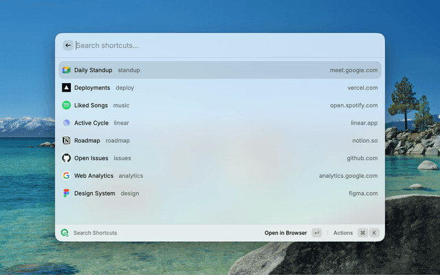 A no-view command for maximum speed. Type a shortcut name and it opens immediately in your browser via QuickLinker's redirect.