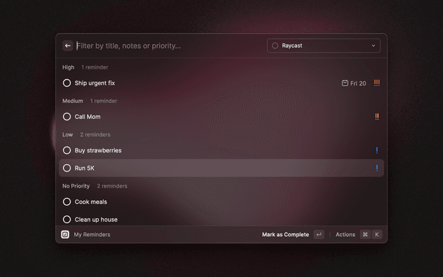 Manage Apple Reminders from within Raycast: